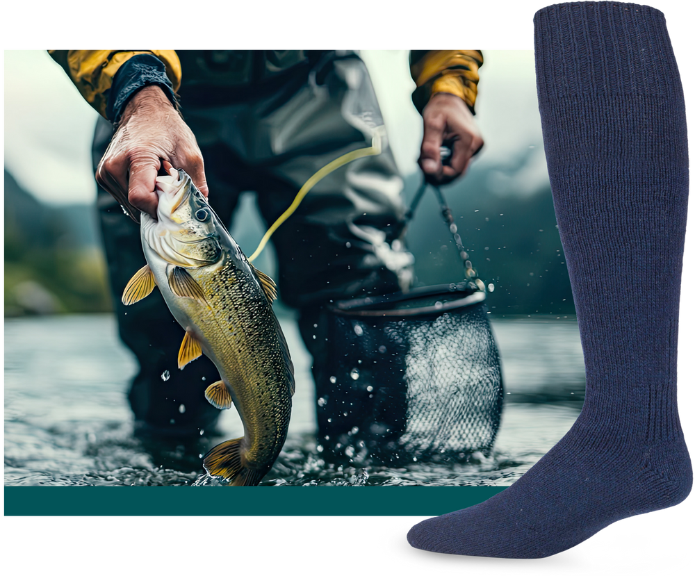From misty mornings on the riverbank to chilly days along the seashore, the fisherman’s way of life has taught us that great angling socks should be as resilient as the fish they pursue. We understand the value of dependable gear, which is why each pair of our Extra Long Angling Socks is made to endure, providing warmth, cushioning, and protection wherever your fishing takes you.