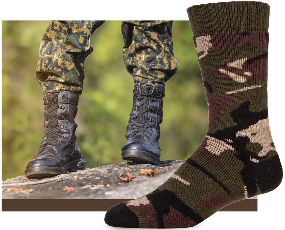 SOCKSHOP Country Pursuit Woodland Walker Men's Thermal Boot Socks in Camo - are designed to keep you outside for longer, finished in classic woodland camouflage for concealment in the field.
